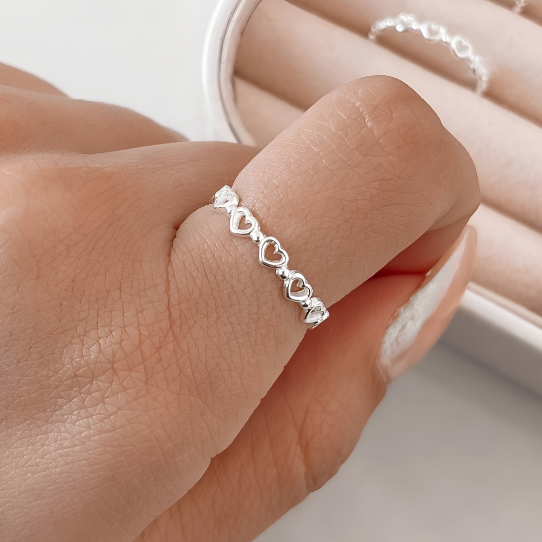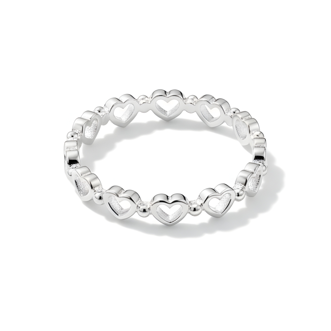 Anel Mini Corações Vazados e Bolinhas – Prata 925
