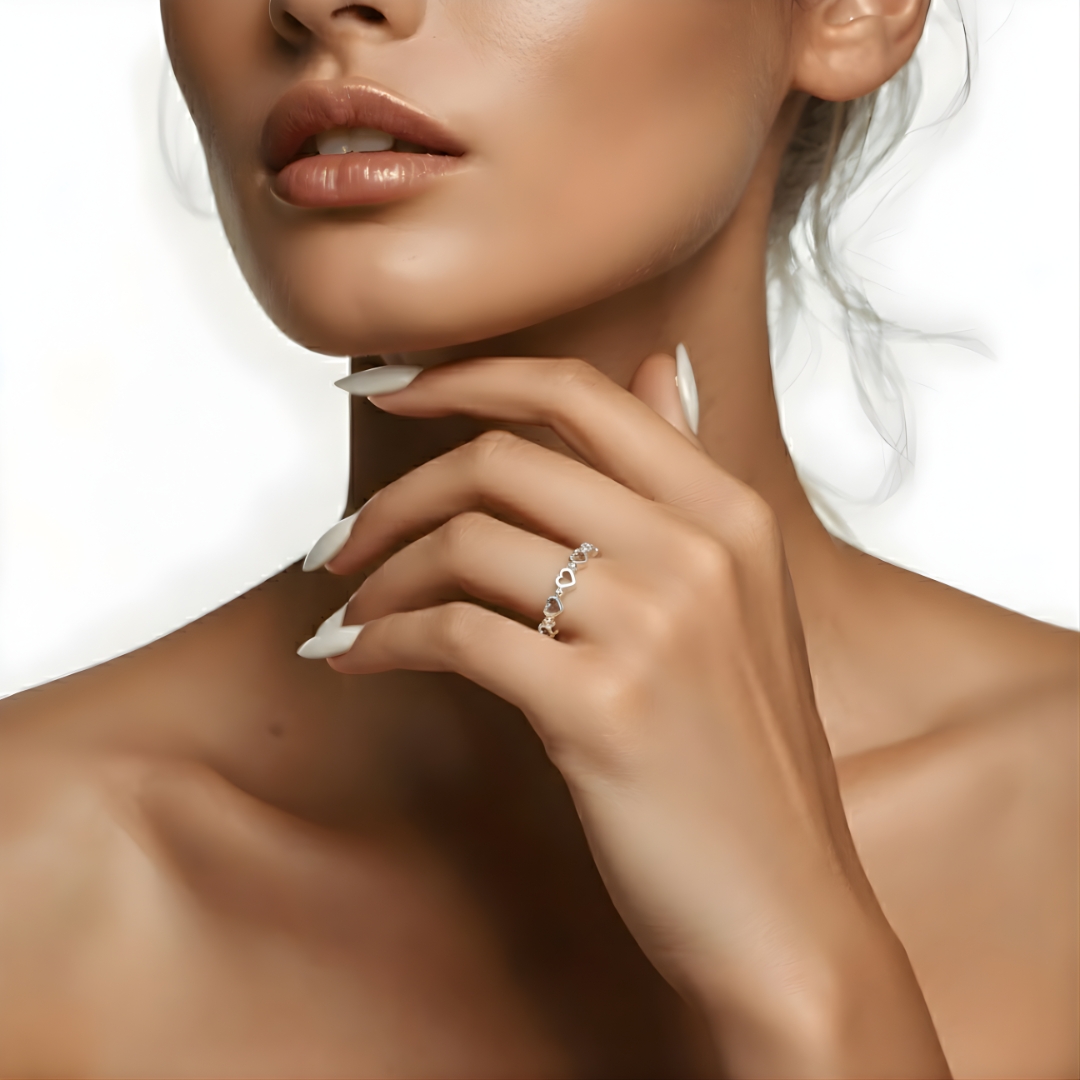 O Anel de Corações Vazados e Bolinhas é a escolha perfeita para quem ama acessórios femininos e cheios de charme. Seu design contínuo de corações transmite leveza e simboliza amor, união e boas energias. Produzido em Prata 925 legítima, o anel possui acabamento polido de alto brilho, garantindo durabilidade, resistência e um visual refinado que combina com qualquer estilo.