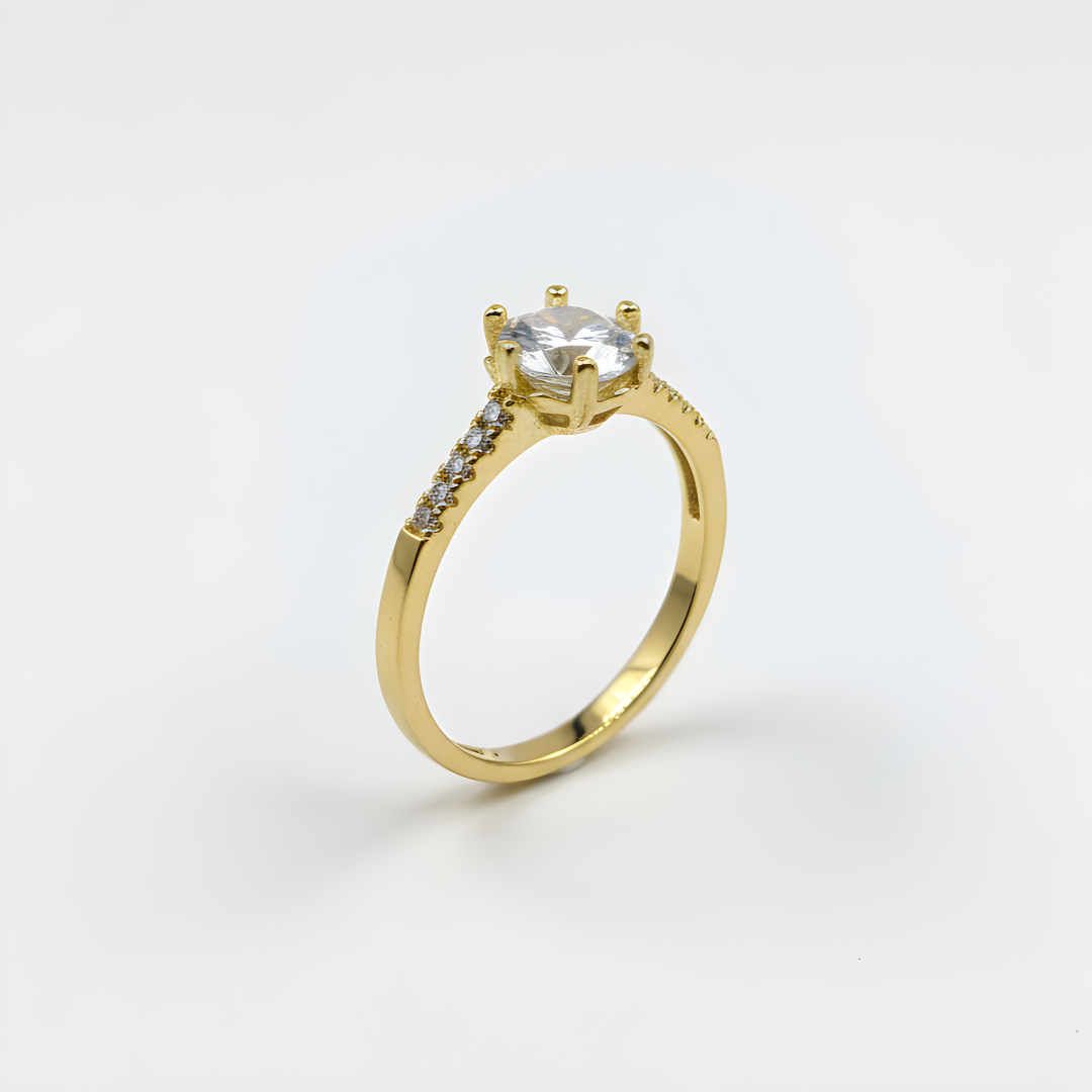 Anel Solitário Cristal Luxo – Banho Ouro 18K