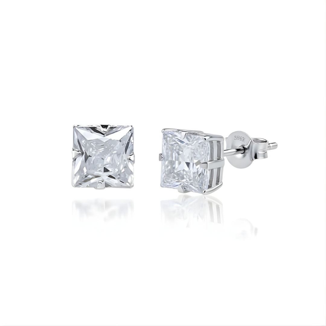 Brinco Zircônia Quadrada Cristal 5 mm – Prata 925