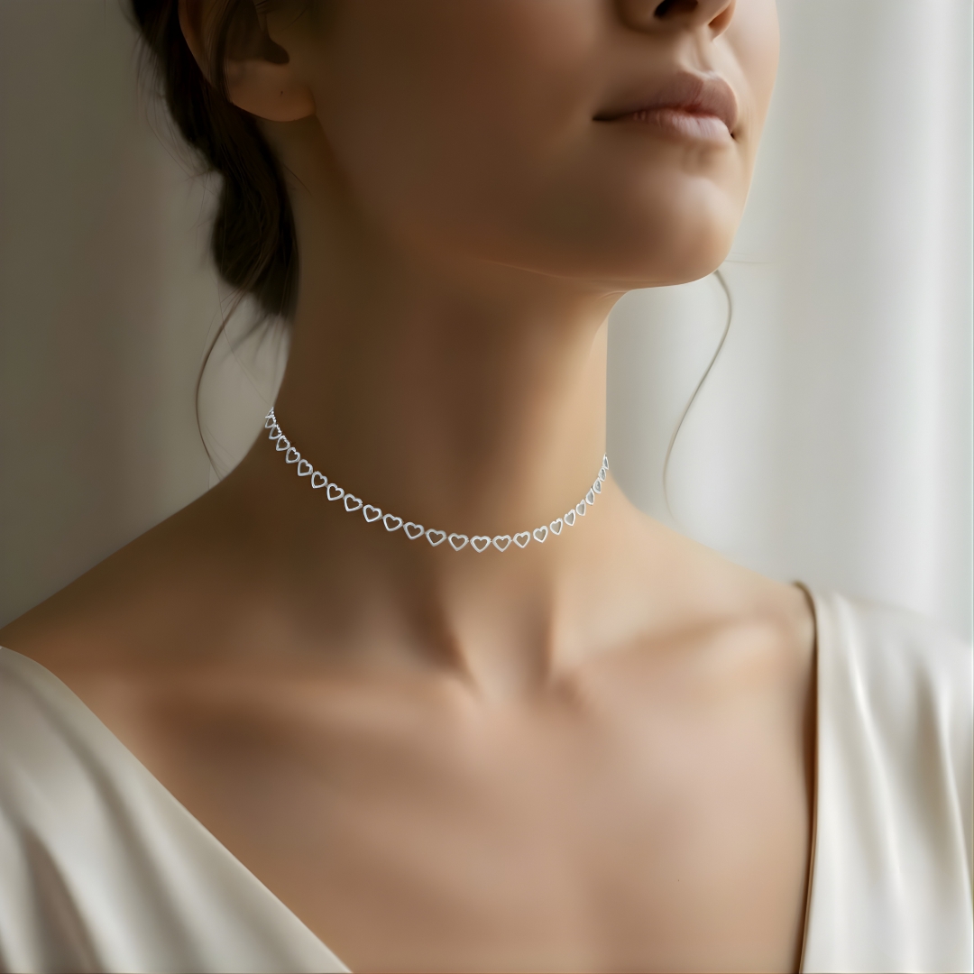 O colar Choker Elos Coração é a escolha perfeita para quem deseja unir delicadeza e estilo em um só acessório. Seu design com elos em formato de pequenos corações transmite romantismo e sofisticação, sendo ideal para compor looks modernos e cheios de personalidade.