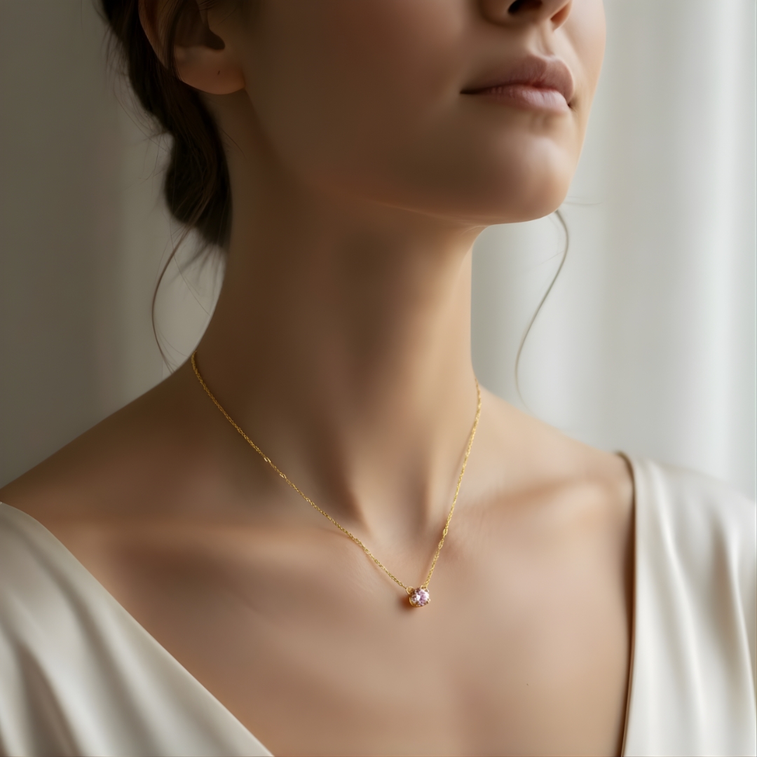 Colar Singapura Quartzo Rosa – Banhado a ouro 18K