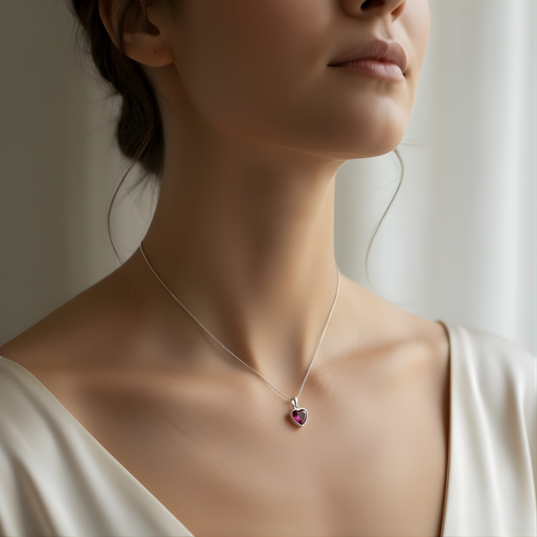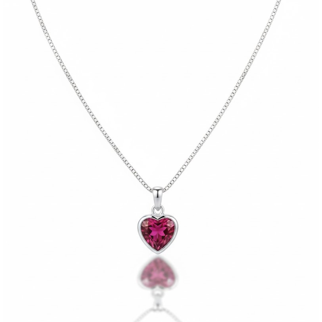Colar Veneziana Pingente Coração Rubelita – Prata 925